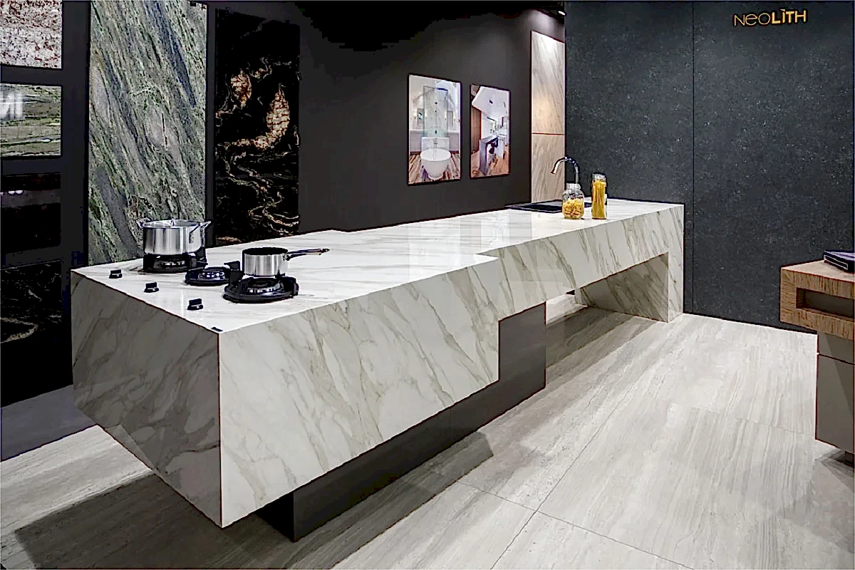 - Estetik görünüm: Neolith tezgahlar, doğal taşların ve camın güzelliğini birleştirerek mutfak ve banyoya şık bir görünüm kazandırır.